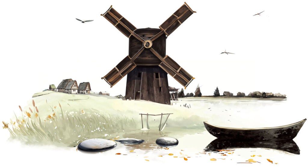W czasie naszego spotkania będziecie Państwo mogli zobaczyć unikalnego 300-letniego koźlaka i jego trochę młodszego brata holendra — ostatnie dwa wiatraki, które przetrwały w tej wodnej krainie.